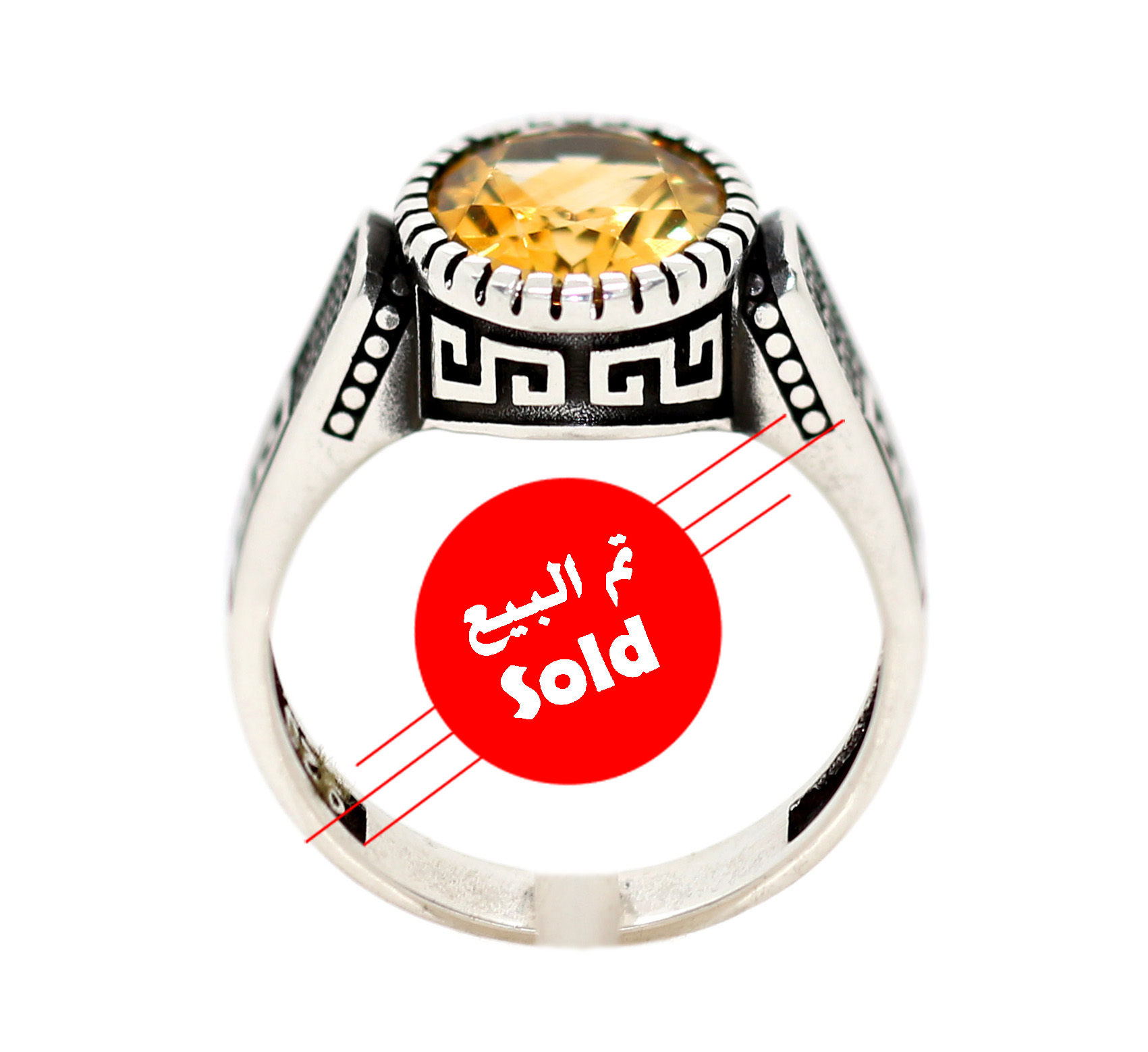 خاتم ملوكي من الفضة عيار 925 مطعم بالنحاس الذهبي ومرصع بفصوص الماركزيت ومتوج بفص تحفة ومميز من حجر العقيق السليماني الطبيعي العيون Agate – لأصحاب الذوق الرفيع والروحانيات العالية – مرفق مع الخاتم شهادة مختومة ومعتمدة من مركزنا