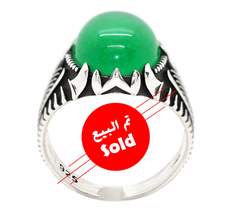 خاتم فضة إيطالي عيار 925 متوج بجوهرة مميزة جدا من حجر اليشم الأخضر الطبيعي jade المعروف والمشهور بإسم الحجر المقدس أو حجر الجنة بدرجة نقاء عالية ودرجة لون مميزة جدا وصافية – مرفق مع الخاتم شهادة مختومة بختم موقعنا الرسمي