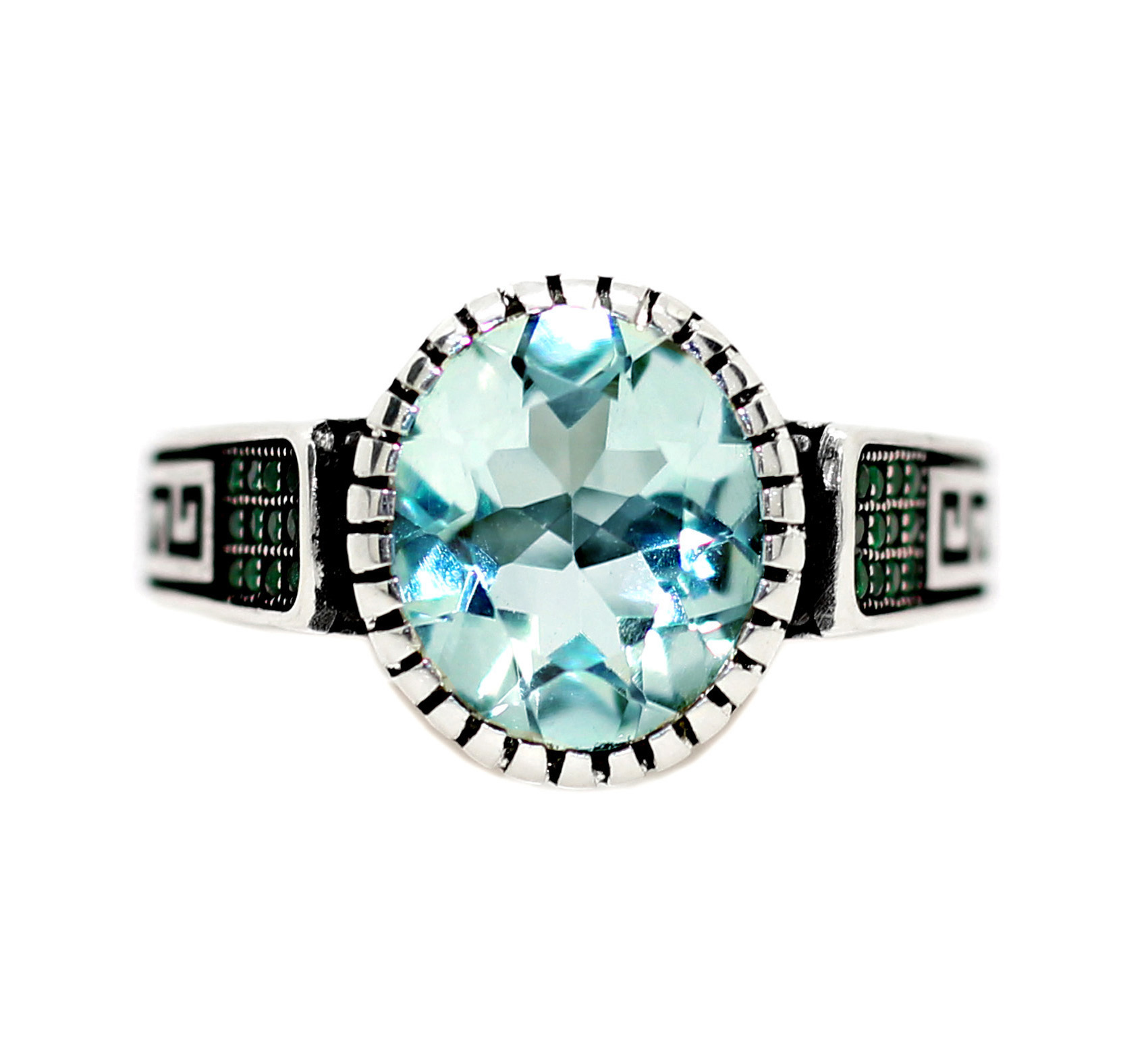 خاتم ملكي من الفضة عيار 925 مطعم بإطار ذهبي عالي البريق ومرصع يفصوص الماركزيت ومتوج بحجر اليشم الاخضر الطبيعي jade المعروف والمشهور بإسم الحجر المقدس أو حجر الجنة بدرجة نقاء عالية ودرجة لون مميزة جدا ونقية – مرفق مع الخاتم شهادة مختومة بختم موقعنا الرسمي
