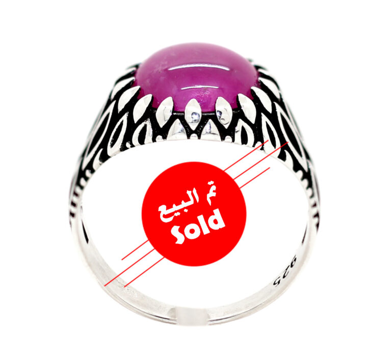 خاتم تحفة من الفضة الإيطالي عيار 925 متوج بجوهرة عالية الجودة من الياقوت الأحمر الطبيعي Ruby ذات درجة لون مميزة ودرجة نقاء عالية وذات بريق صدفي نادر ومميز وزنها 7.5 قيراط – مرفق مع الخاتم شهادة مختومة بختم موقعنا الرسمي