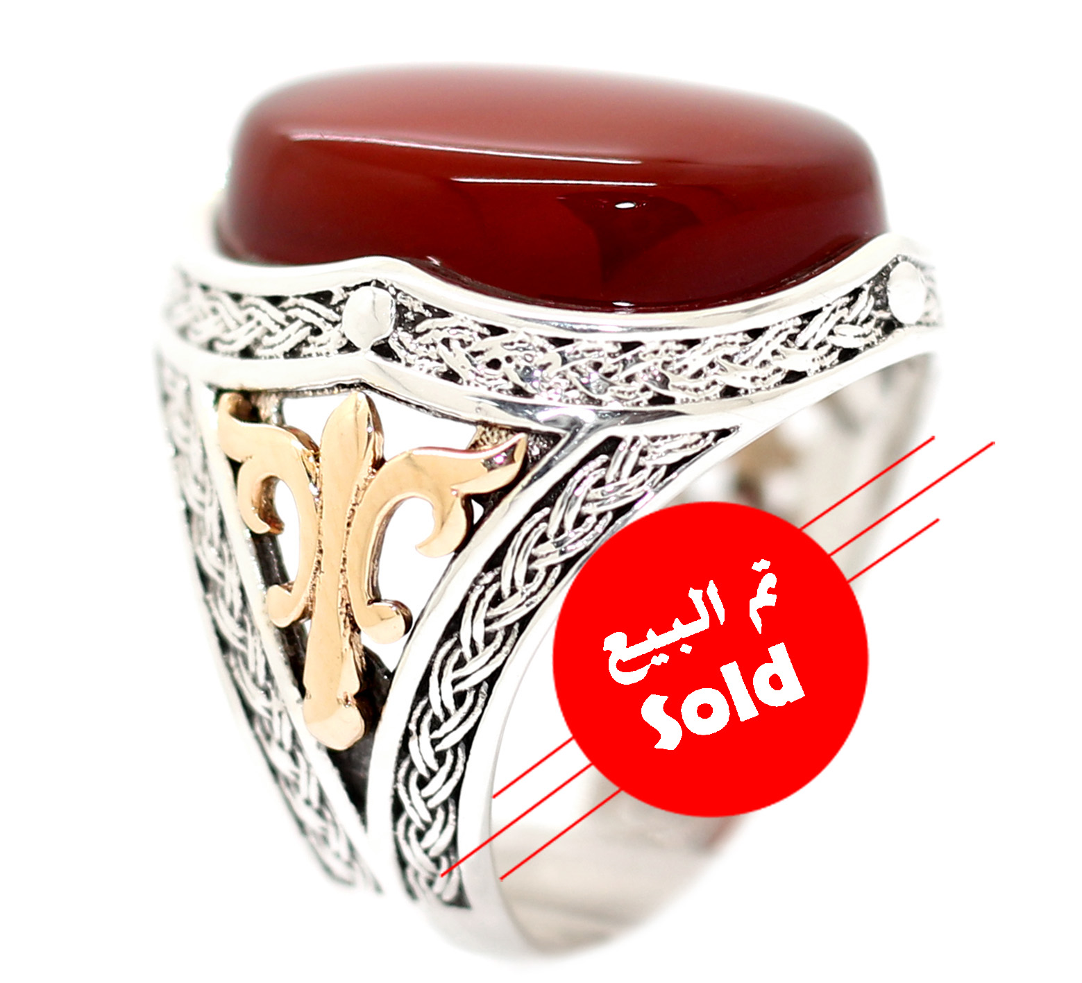 • خاتم عقيق احمر يمني طبيعي Agate دم غزال