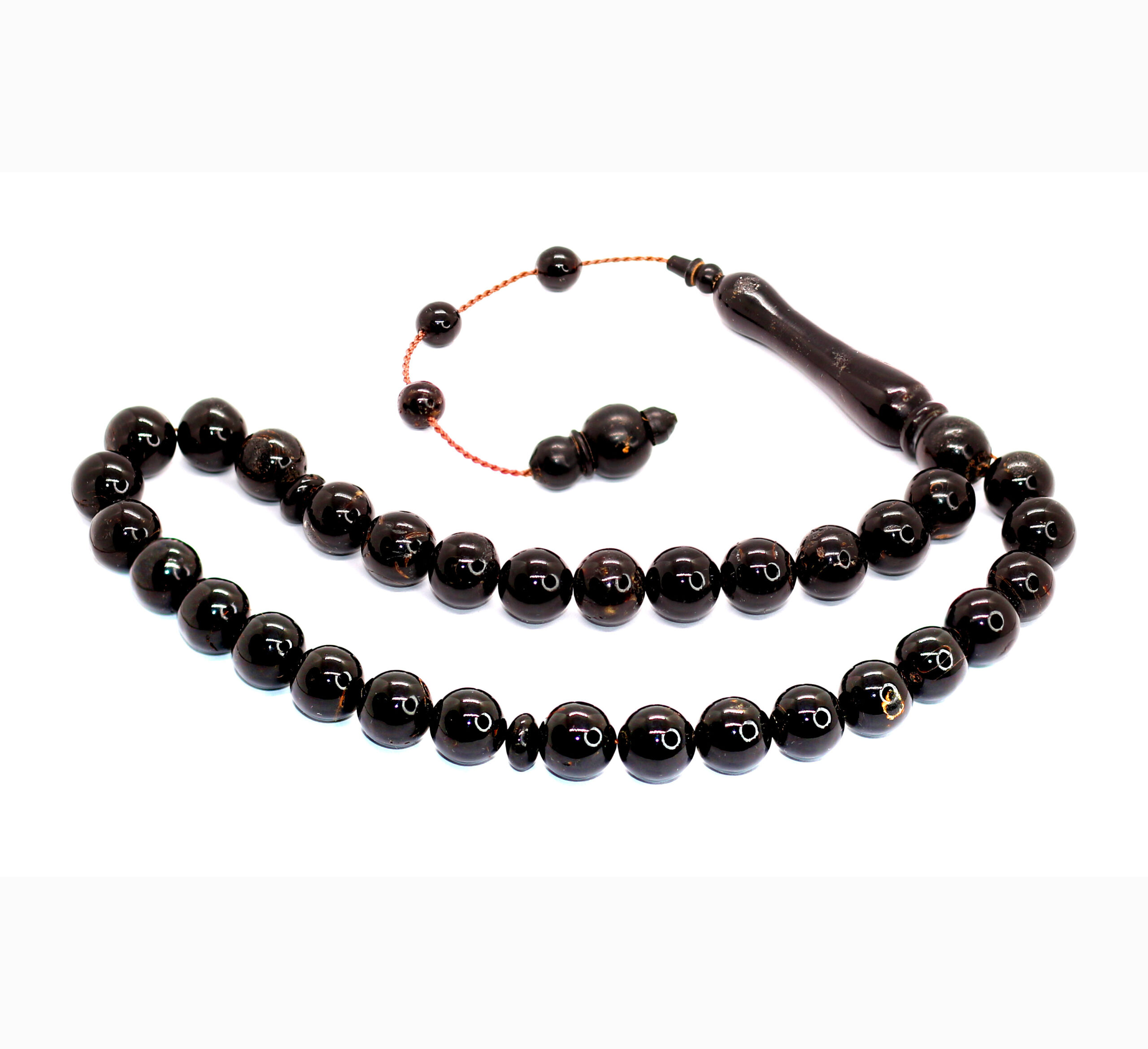 سبحة 33 حبة عبارة عن تحفة نادرة ومميزة جدا من الكهرمان البلطيقي الطبيعي Amber الكهرمان البولندي الطبيعي المعروف بإسم العنبر الأشهب – حجم الحبة 15مليمتر × 12 مليمتر خراطة يدوي Hand Made مميزة جدا ونادرة وشُرابة السبحة من الفضة عيار 925