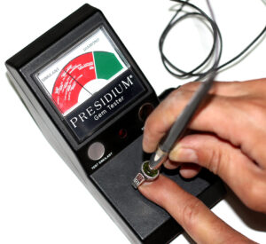 تم اختبار الحجر على جهاز كشف واختبار الأحجار الكريمة PRESIDIUM Gem Tester كما يظهر في الصورة والفيديو :