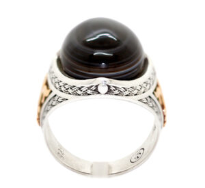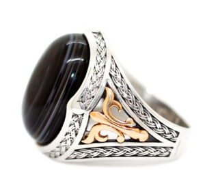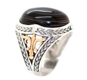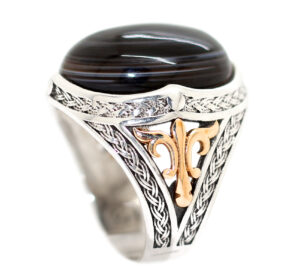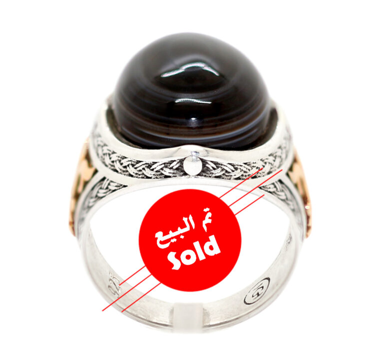 خاتم ملكي من الفضة عيار 925 متوج بحجر تحفة ومميز جدا من العقيق السليماني الطبيعي Agate المصور – لأصحاب الذوق الرفيع والروحانيات العالية – مرفق مع الخاتم شهادة مختومة بختم موقعنا الرسمي