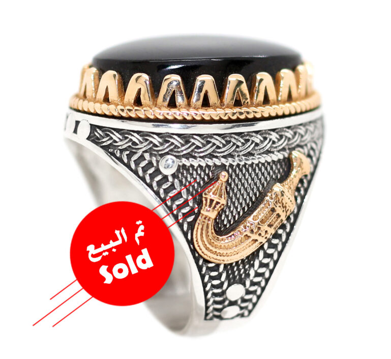 خاتم ملكي تحفة من الفضة عيار 925 مطعم بإطار ذهبي عالي البريق ومتوج بحجر من التورمالين الأسود الطبيعي الحُر Black Tourmaline المعرق بعروق ذهبية عالي الجودة والبريق المعروف والمشهور بإسم حجر الطاقات الشفائية – وزن الحجر 16 قيراط – مرفق مع الخاتم شهادة مختومة بختم موقعنا الرسمي