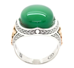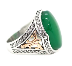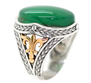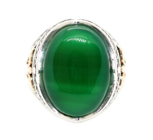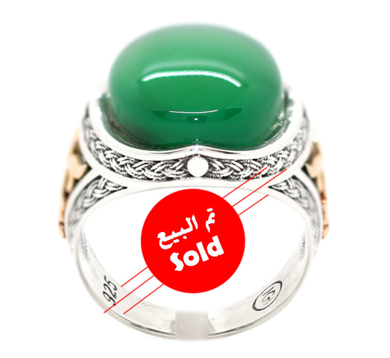 خاتم ملكي تحفة من الفضة الإيطالي عيار 925 متوج بحجر مميز جدا من العقيق الأخضر اليمني الطبيعي Agate ذات درجة لون مميزة جدا ودرجة نقاء عالية – مرفق مع الخاتم شهادة مختومة بختم موقعنا الرسمي