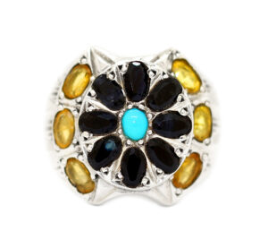 خاتم زفير طبيعي Yellow Sapphire & Blue Sapphire وفيروز Turquoise