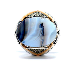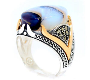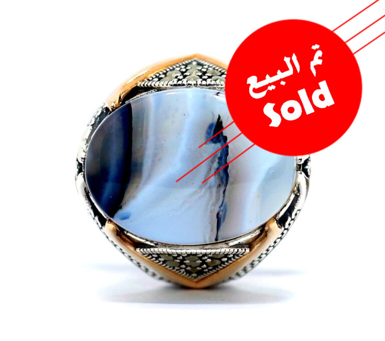 • خاتم عقيق ازرق طبيعي نادر Agate العقيق الملكي