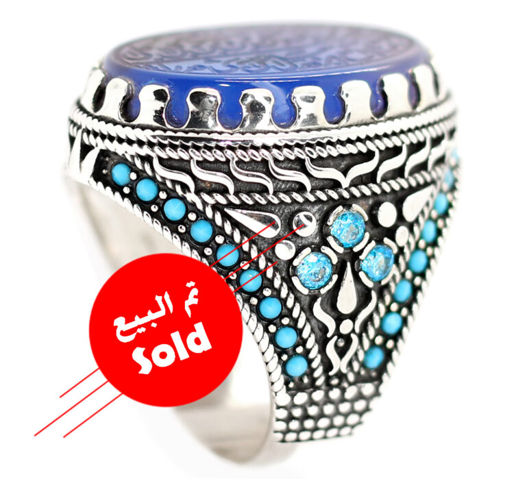 • خاتم عقيق ازرق طبيعي نادر Agate العقيق الملكي
