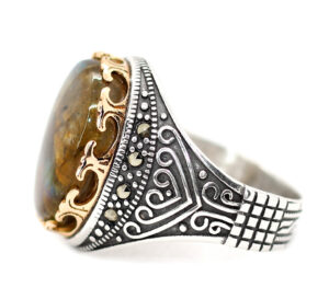 • خاتم عقيق ازرق طبيعي نادر Agate العقيق الملكي