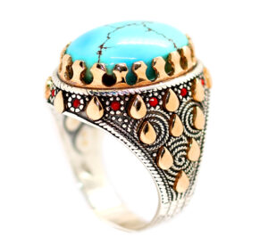 • خاتم فيروز نيشابوري طبيعي معرق Turquoise