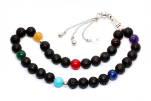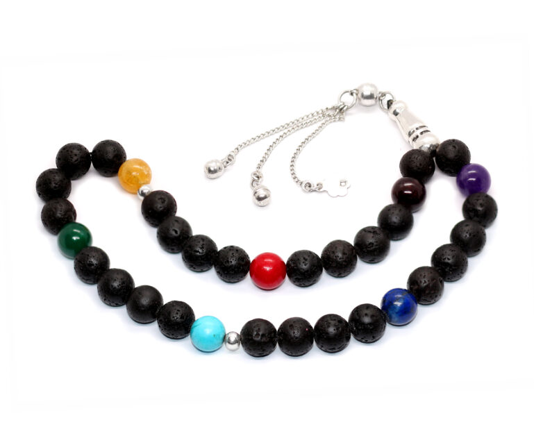 سبحة الطاقة للشاكرات السبع الأصلية Chakras المعروفة والمشهورة بفتح مسارات الطاقة في الجسم والمميزة بأحجارها السبعة الطبيعية التي توافق الشاكرات السبعة في جسم الانسان Chakras – حجم الحبة 10 مليمتر – والاحجار كلها طبيعية 100% وتم إكمال باقي السبحة بأحجار لافا البركانية الطبيعية Lava Stone والسبحة مطعمة بالفضة عيار 925 (المأذنة والشُرابة والفواصل من الفضة) مرفق مع السبحة شهادة مختومة بختم موقعنا الرسمي