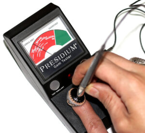 تم اختبار الحجر على جهاز كشف واختبار الأحجار الكريمة PRESIDIUM Gem Tester كما يظهر في الصورة