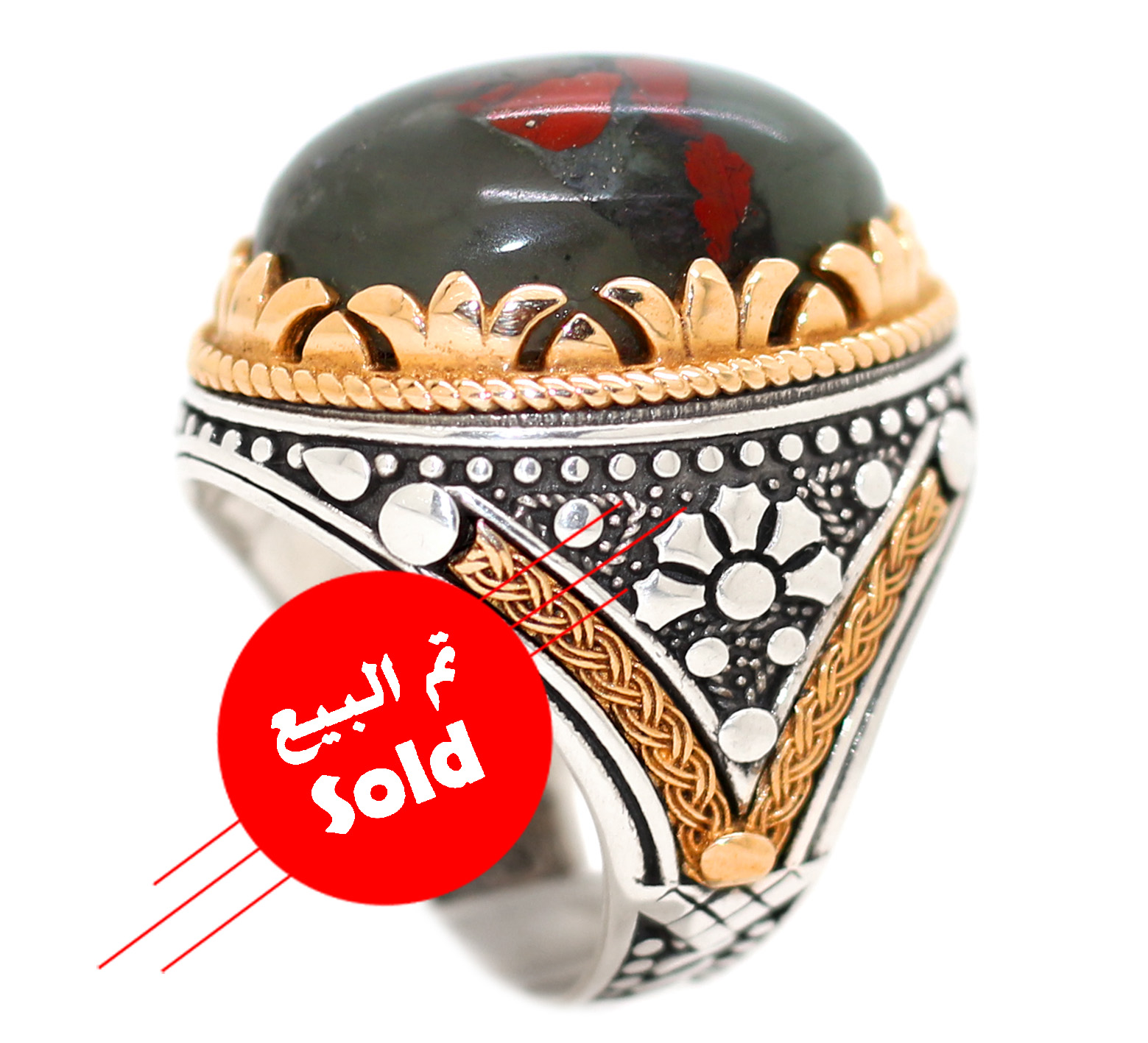 • خاتم حجر الدم الطبيعي Blood Stone النادر