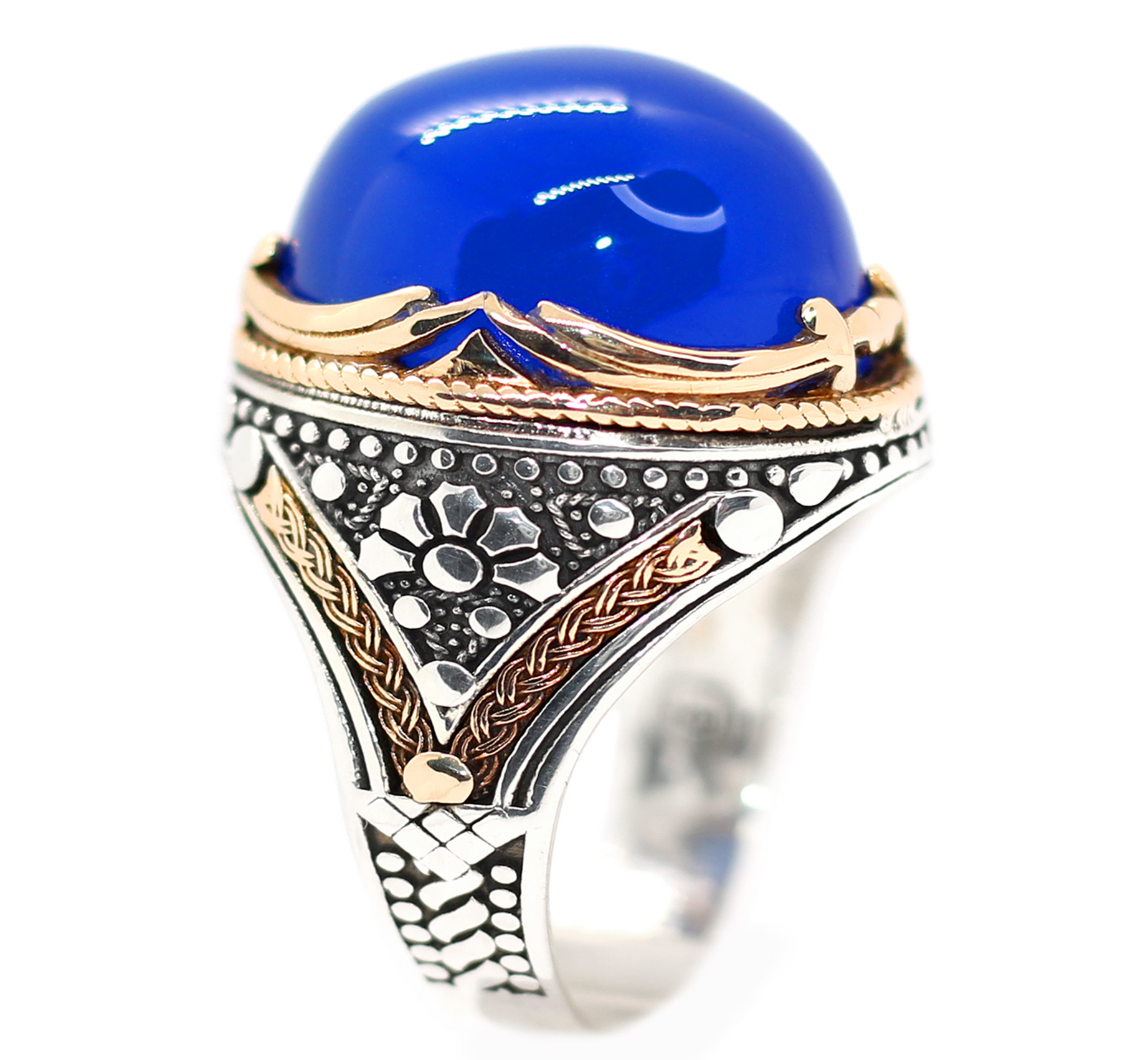 • خاتم عقيق ازرق طبيعي نادر Agate العقيق الملكي