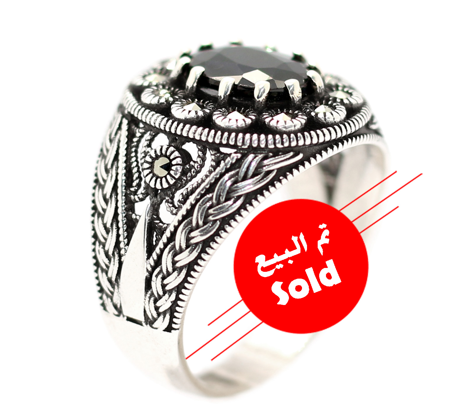 خاتم ملكي من الفضة عيار 925 مرصع بفصوص الماركزيت ومتوج بحجر ملاكيت اخضر طبيعي – مرمر اخضر – والذى يُطلق عليه اسم حجر التوازن والتناغم وهي احجار ذات طاقة عالية – مرفق مع الخاتم شهادة مختومة ومعتمدة من مركزنا