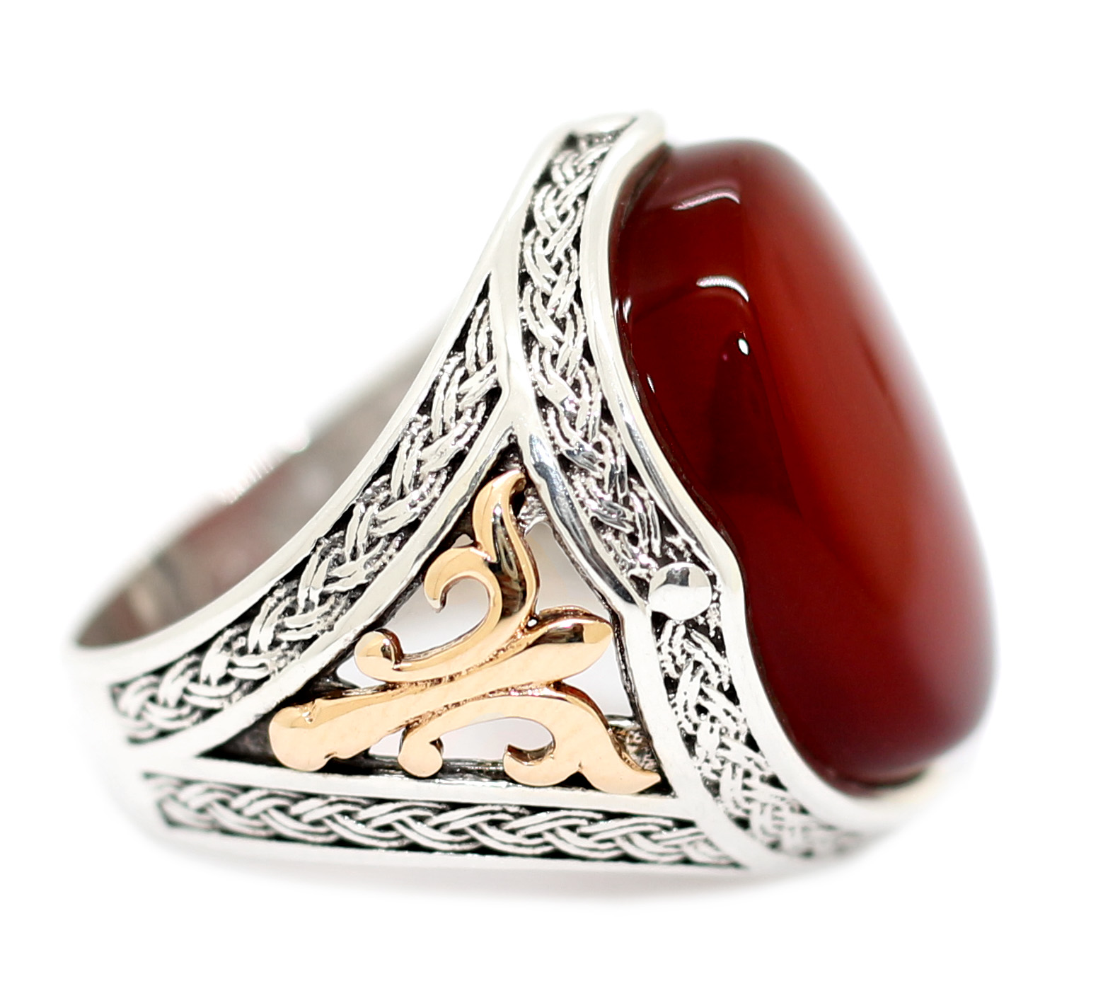 • خاتم عقيق احمر يمني طبيعي Agate دم الغزال