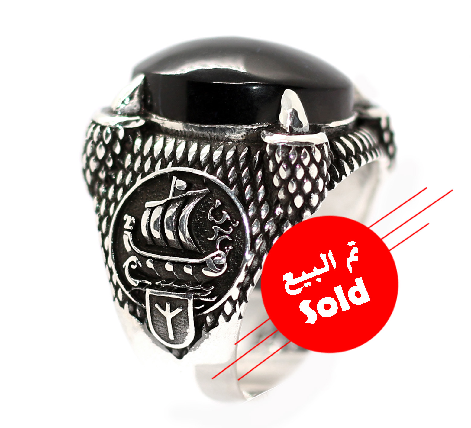 خاتم ملكي كبير من الفضة عيار 925 مطعم بالنحاس الذهبي – لأصحاب الذوق الرفيع والروحانيات العالية – ومرصع بفصوص الماركزيت ومتوج بفص كبير الحجم ومميز جدا من حجر العقيق السليماني البقراني الطبيعي المصور بشكل جميل ومميز – مرفق مع الخاتم شهادة مواصفات مختومة ومعتمدة من مركزنا