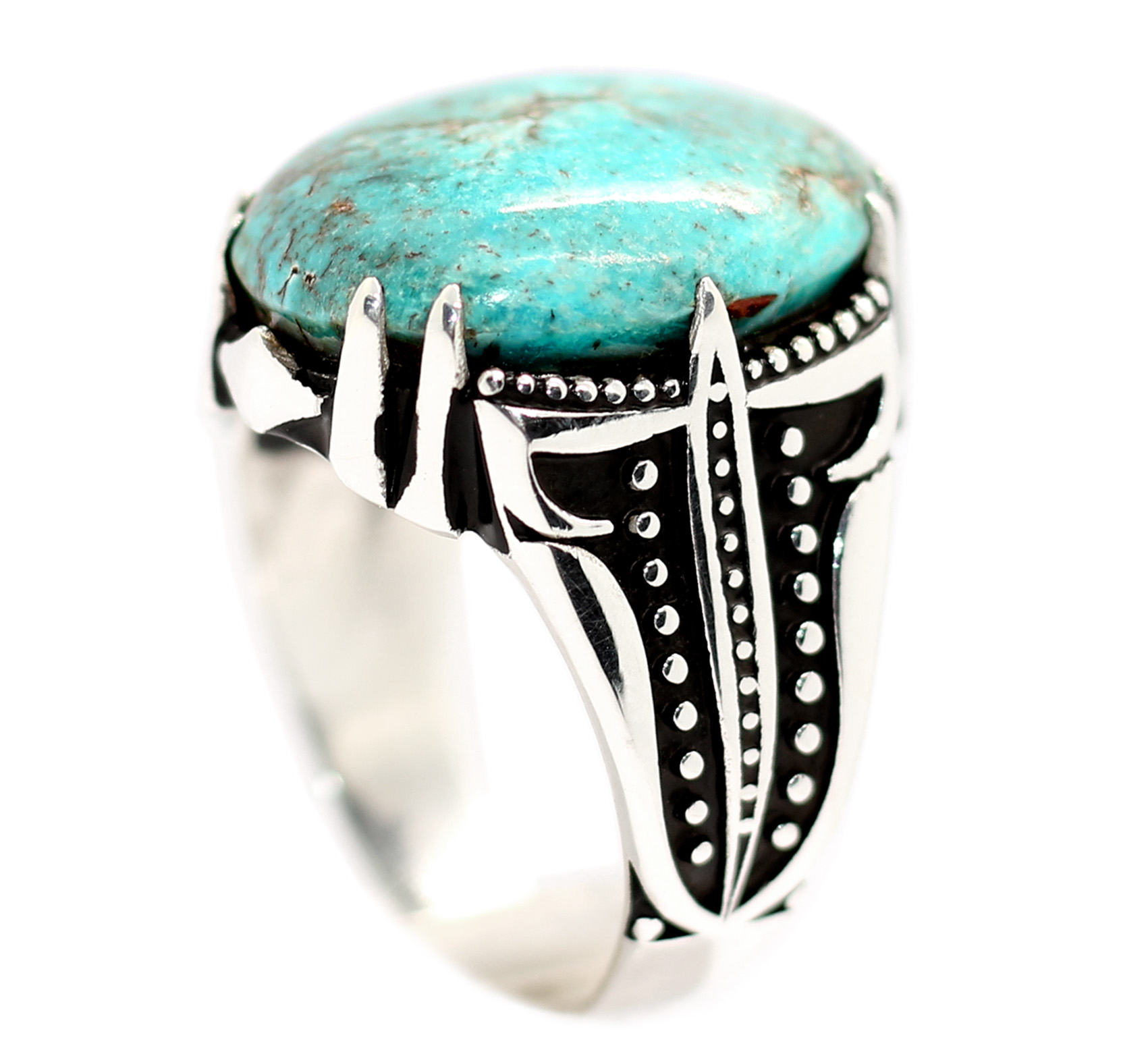 • خاتم فيروز سيناوي طبيعي معرق Turquoise